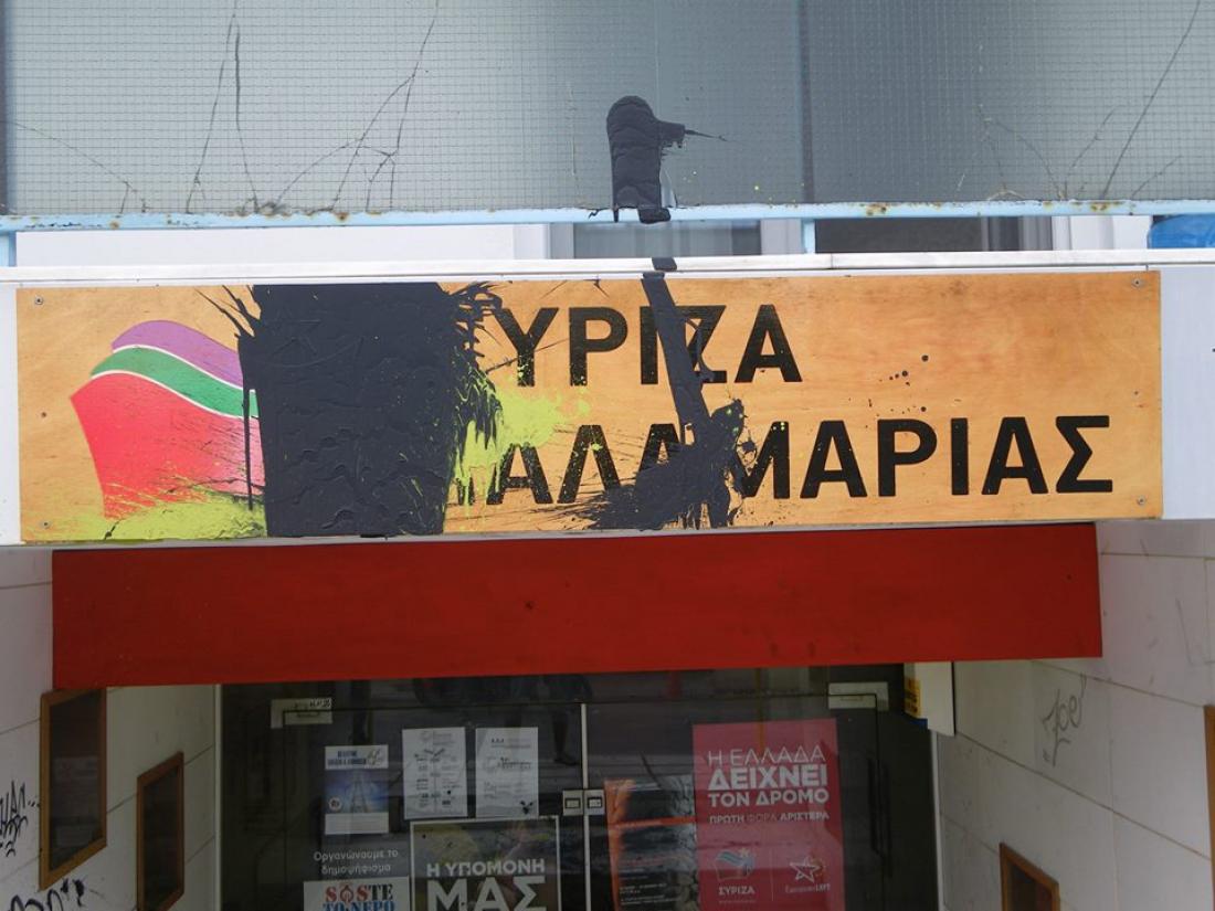 Επίθεση από άγνωστους δέχθηκαν τα ξημερώματα τα γραφεία του ΣΥΡΙΖΑ, στην Καλαμαριά Θεσσαλονίκης.