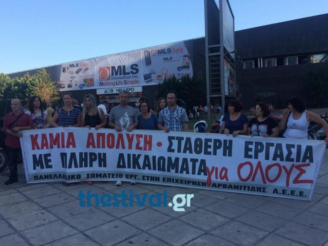 Συγκέντρωση έξω από τη 82η Διεθνή Έκθεση Θεσσαλονίκης πραγματοποιούν αυτή την ώρα εργαζόμενοι στα σούπερ μάρκετ "Καρυπίδης".