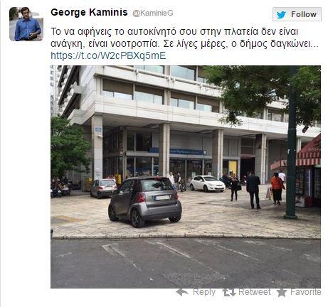 Αυτό προανήγγειλε ο δήμαρχος Αθηναίων Γιώργος Καμίνης μέσω του Αθήνα 9,84, επισημαίνοντας ότι σκοπός του αυστηρού αυτού μέτρου είναι η προστασία του ελεύθερου δημόσιου χώρου, με αιχμή τις πλατείες, τους πεζόδρομους και τις ράμπες εξυπηρέτησης Ατόμων Με Ειδικές Ανάγκες.
