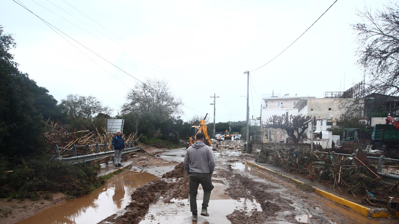 Οι αρχές προχώρησαν στον απεγκλωβισμό δύο ηλικιωμένων, ενώ ο δήμαρχος του νησιού απηύθυνε επείγουσα έκκληση στους πολίτες να αποφεύγουν τις μετακινήσεις λόγω των φερτών υλικών και των κατεστραμμένων φρεατίων που κατέστησαν τους δρόμους παγίδες θανάτου.