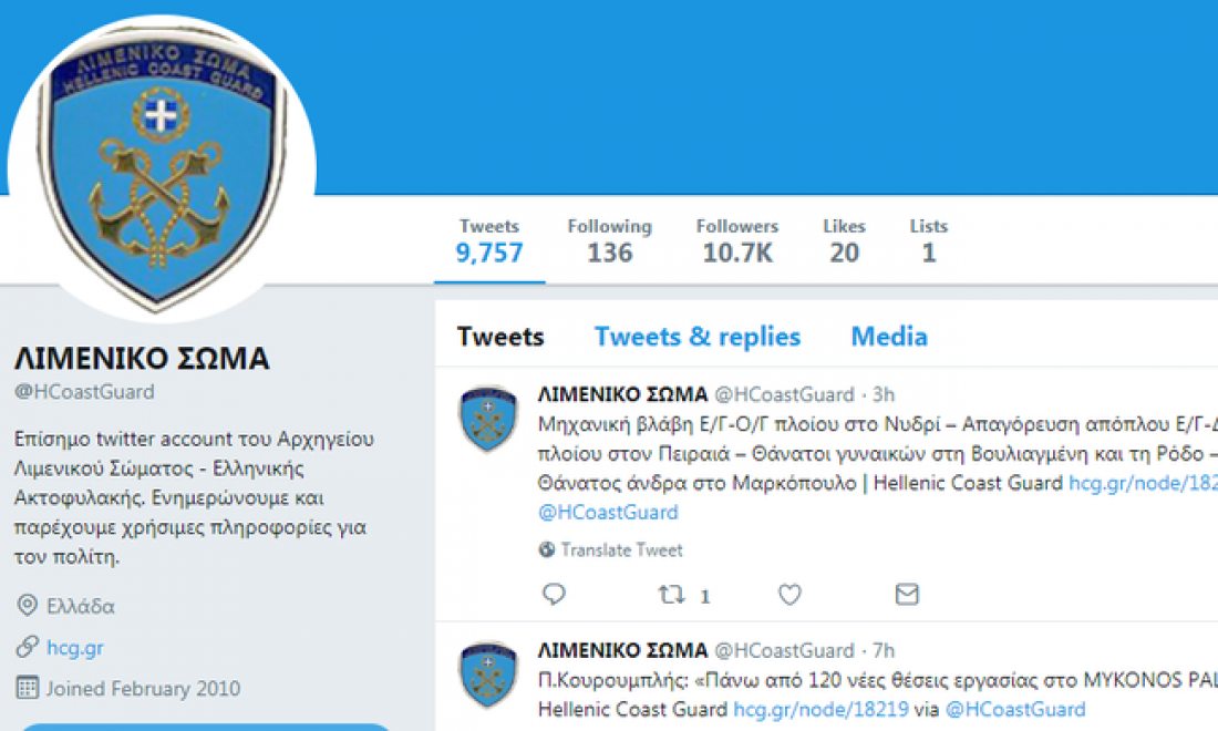 Για την ιστορία, το επίμαχο tweet διαγράφηκε από τον επίσημο λογαριασμό του Λιμενικού Σώματος.