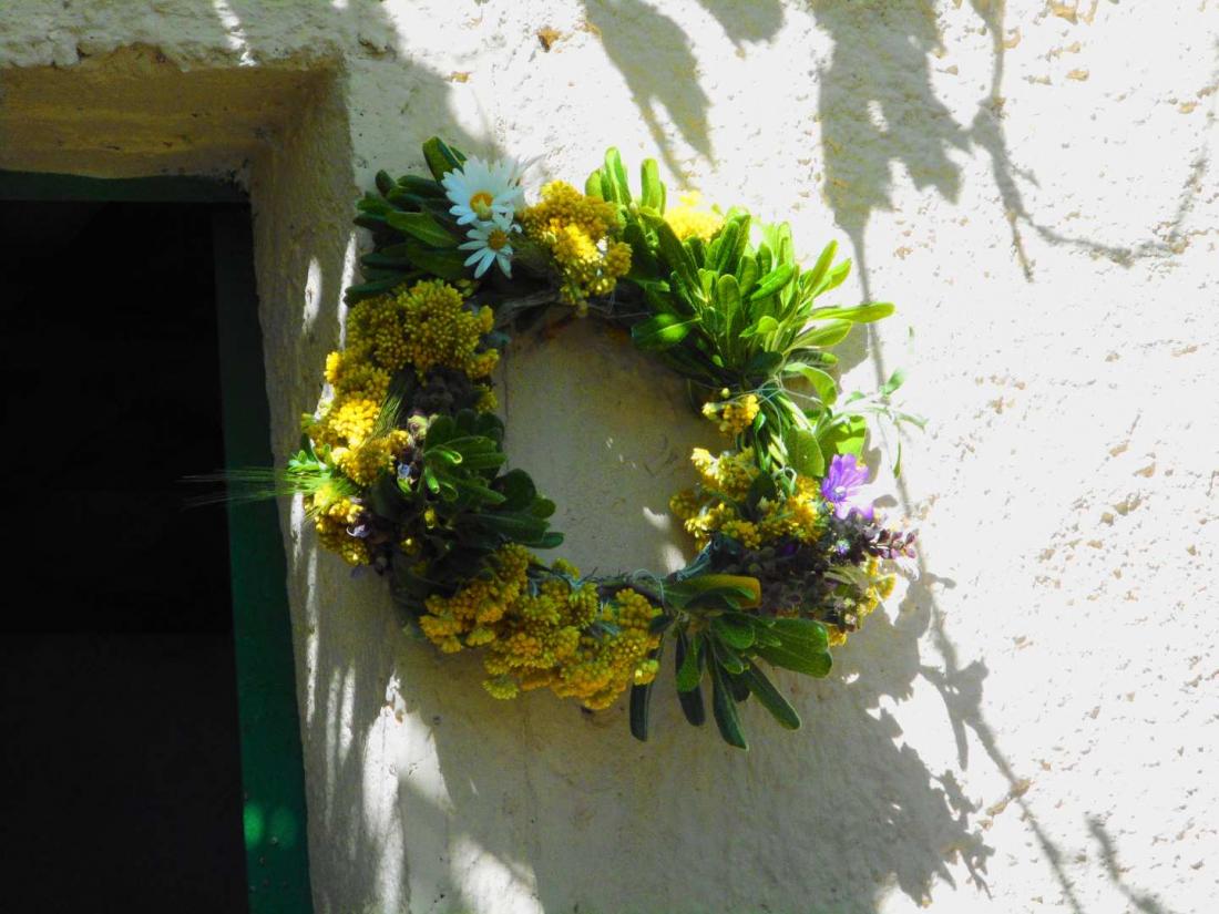 Οι κάτοικοι περιφέρουν έναν κορμό κυπαρισσιού, σκεπασμένο με κίτρινες μαργαρίτες που γύρω του έχει ένα στεφάνι με χλωρά κλαδιά.