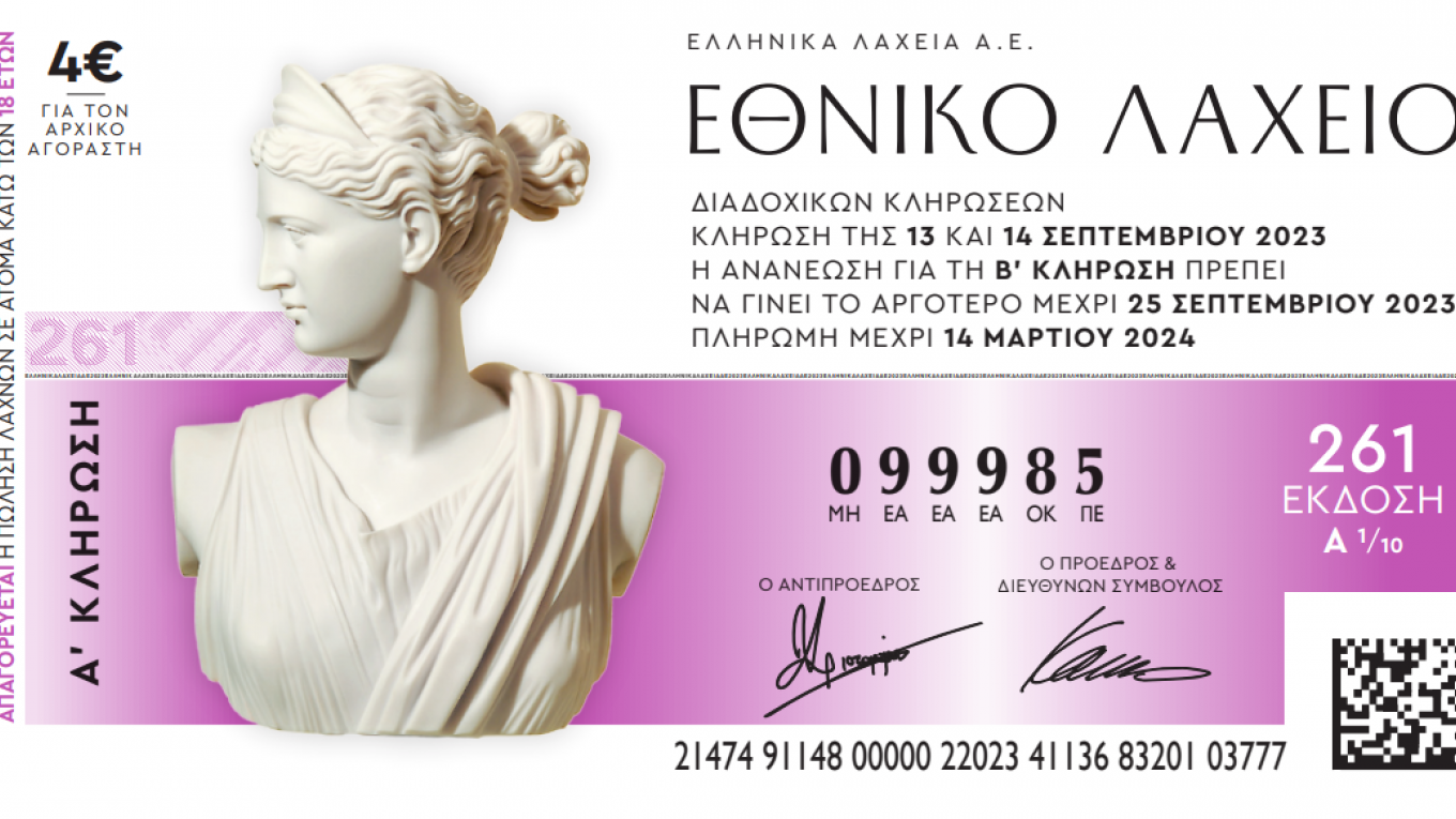 Το μεγάλο εγγυημένο έπαθλο του 1.000.000 ευρώ και πολλά ενδιάμεσα κέρδη, με μόνο με 4 ανανεώσεις, διεκδικούν οι παίκτες του Εθνικού Λαχείου με τους λαχνούς της 261ης έκδοσης, οι οποίοι διατίθενται στα καταστήματα ΟΠΑΠ σε όλη την Ελλάδα.