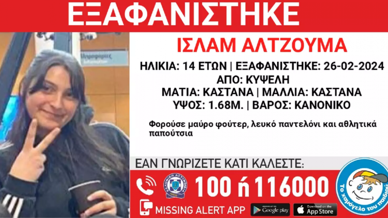Συναγερμός έχει σημάνει στο «Χαμόγελο του Παιδιού» από την εξαφάνιση της 14χρονης Ισλάμ Αλτζουμά από την Κυψέλη, με καταγωγή από τη Συρία.