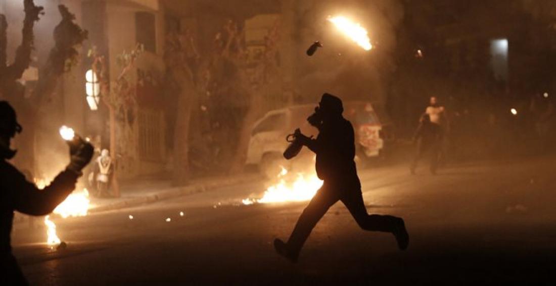 Εξάρχεια - Eπιθέσεις με φωτοβολίδες εναντίον διμοιρίας ΜΑΤ