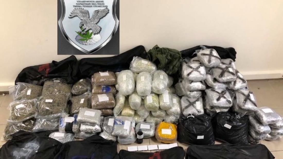 Στις έρευνες που έγιναν σε δύο αυτοκίνητα, που χρησιμοποιούσαν μέλη του κυκλώματος, βρέθηκαν και κατασχέθηκαν: 129 δέματα ακατέργαστης κάνναβης, συνολικού βάρους 139 κιλών και 258 γραμμαρίων, που βρίσκονταν μέσα σε ταξιδιωτικούς σάκους, πέντε δέματα κατεργασμένης κάνναβης συνολικού βάρους 510 γραμμαρίων, ένα πλαστικό μπουκάλι που περιείχε χασισέλαιο μικτού βάρους 352 γραμμαρίων και δύο κινητά τηλέφωνα που χρησιμοποιούνταν για τις παράνομες συναλλαγές.