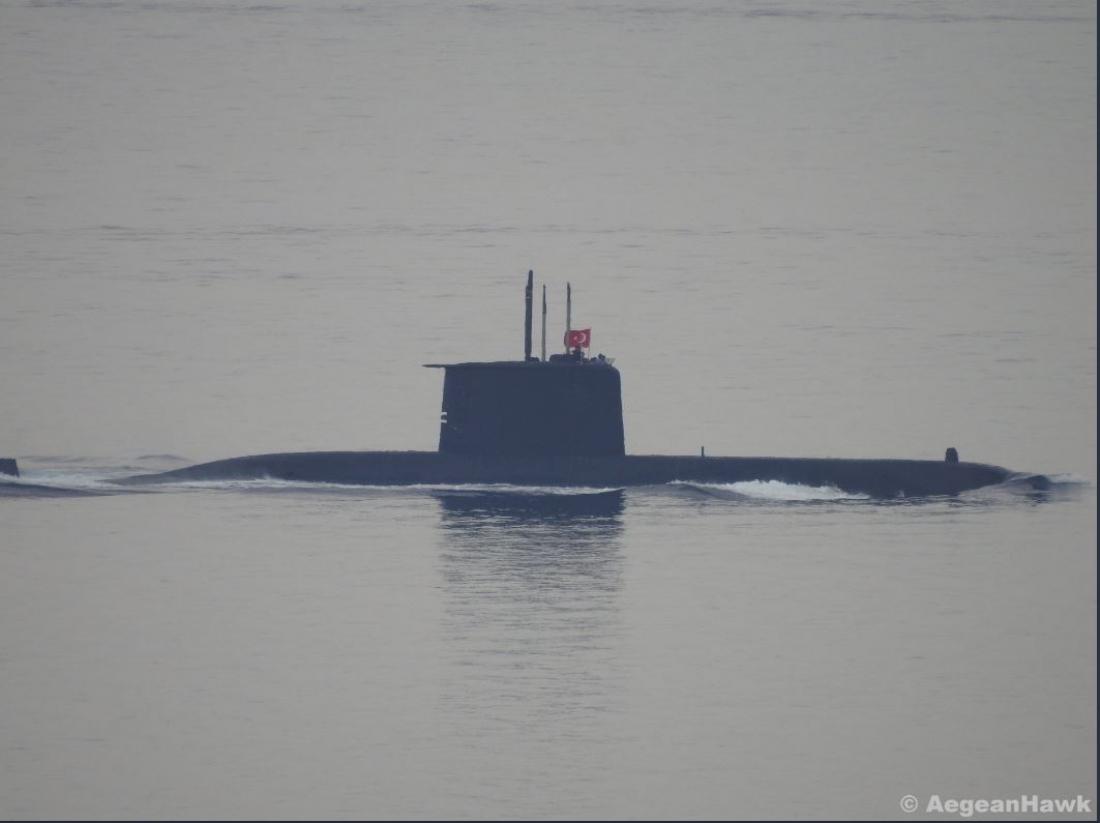 Σύμφωνα με το Aegean Hawk, ένα υποβρύχιο τύπου Preveze 209/1400 του Τουρκικού Πολεμικού Ναυτικού πραγματοποίησε διέλευση με κατεύθυνση προς τον νότο χθες το απόγευμα.