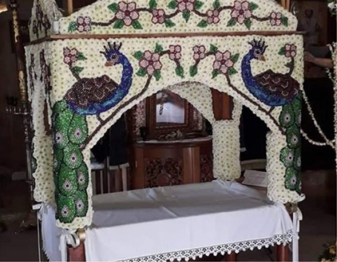 Όχι μία ημέρα, ούτε μία εβδομάδα, αλλά, δύο μήνες προετοιμασίας χρειάστηκαν για να στολιστεί ο επιτάφιος της Ιεράς Μονής Αγίου Παντελεήμονος στο Φόδελε.