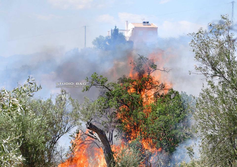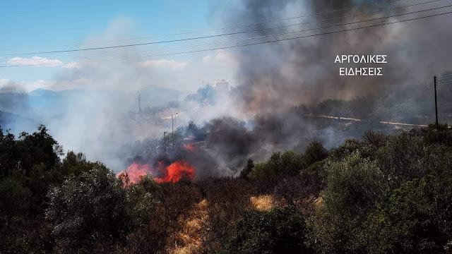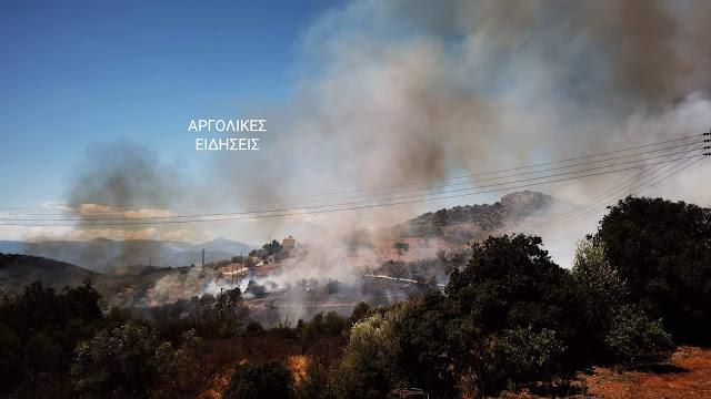 Φωτιά στην Αργολίδα: Επίγειες και εναέριες δυνάμεις πυρόσβεσης επιχειρούν στην περιοχή Πυργιώτικα, του Δήμου Ναυπλιέων, στην Αργολίδα, προκειμένου να θέσουν υπό έλεγχο τη φωτιά που καίει αγροτοδασική έκταση.
