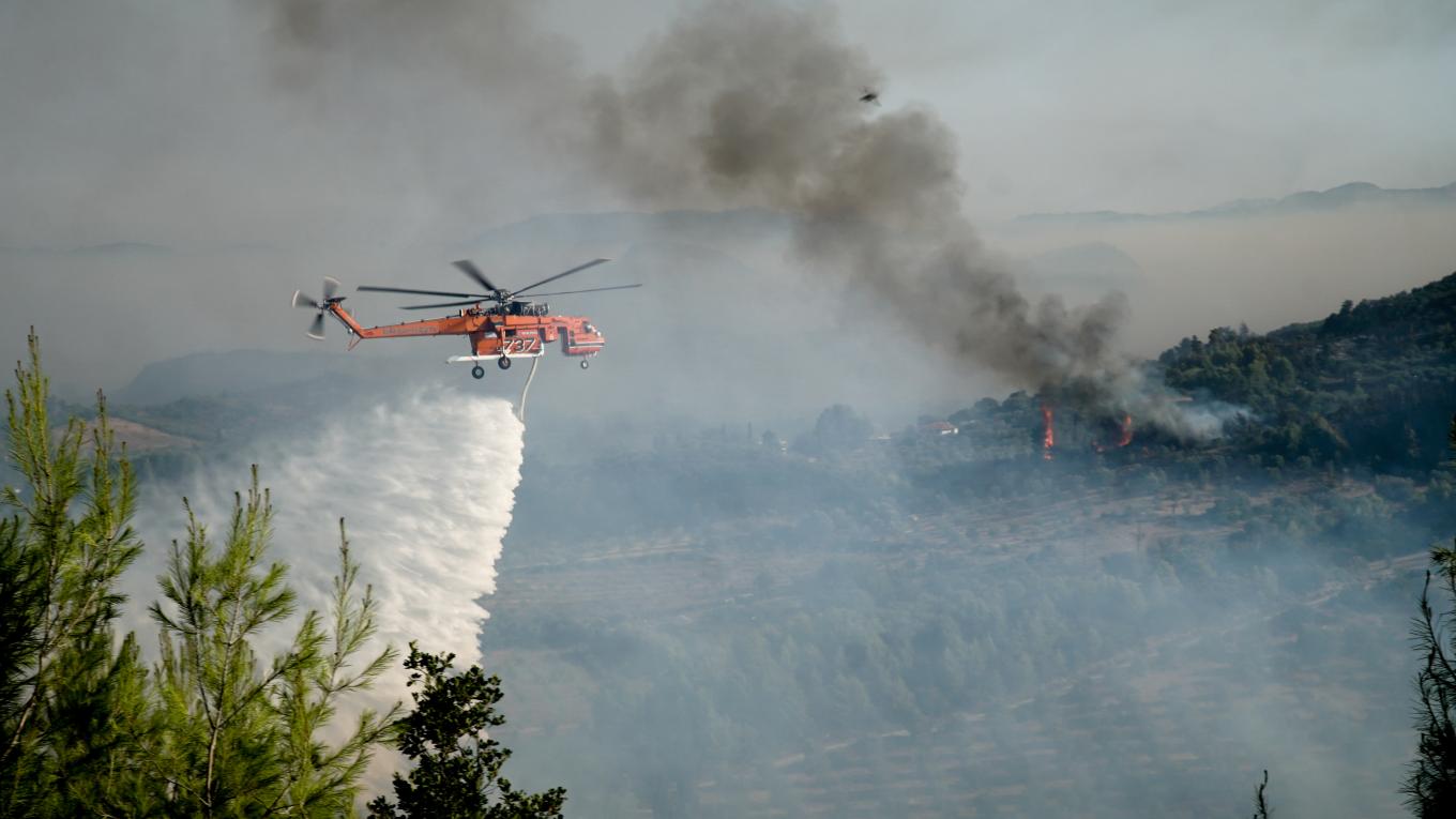 Στο σημείο επιχειρούν 52 πυροσβέστες, με τρεις ομάδες πεζοπόρου τμήματος και 16 οχήματα , ενώ από αέρος πραγματοποιούν ρίψεις νερού τρία πυροσβεστικ ά αεροπλάνα.