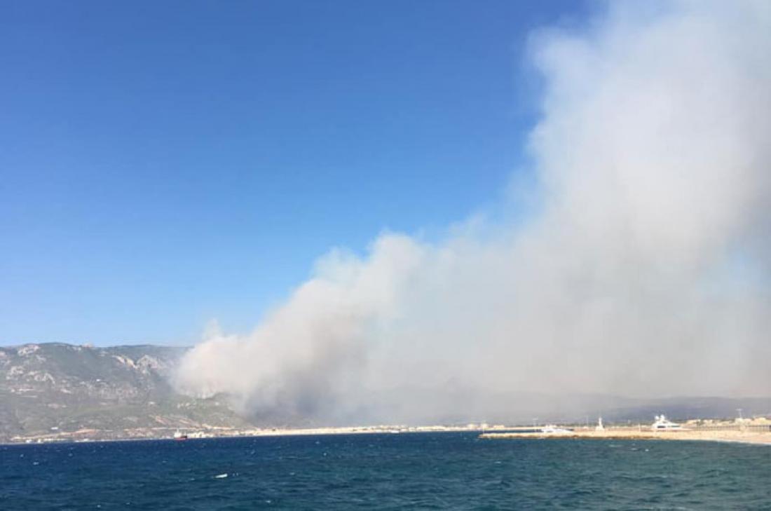 H φωτιά ξέσπασε το απόγευμα του Σαββάτου στον περιφερειακό πάνω απ’ την πόλη του Λουτρακίου και βόρεια του νεκροταφίου της πόλης.