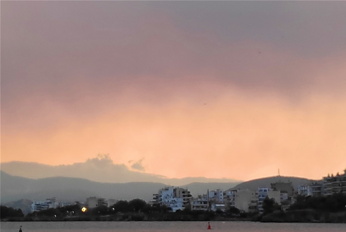 Έντονη είναι η αίσθηση του καπνού από τη φωτιά και στη Χαλκίδα