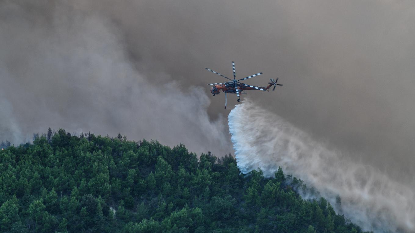 Στη μάχη με τις φλόγες ρίχθηκαν επίσης δύο ελικόπτερα και δύο αεροσκάφη καθώς το σημείο είναι εξαιρετικά δύσβατο.