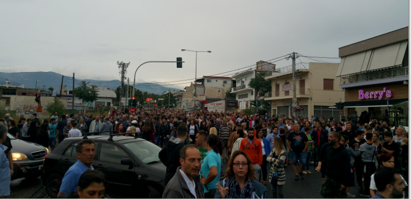 Καθώς η πορεία των περίπου 1.000 κατοίκων κατέληγε στον σιδηροδρομικό σταθμό, ομάδα περίπου 200 νεαρών μπήκαν στον παράδρομο της Αττικής Οδού και κινήθηκαν προς τον καταυλισμό, μετά τον τραγικό θάνατο του 11χρονου μαθητή, από αδέσποτη σφαίρα.