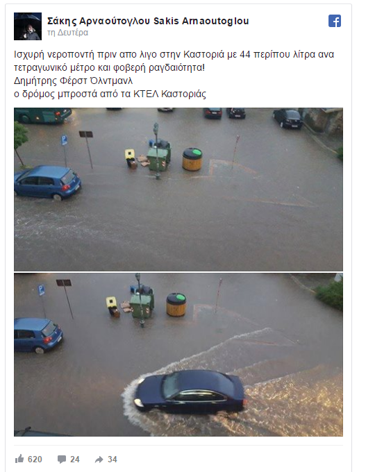 Μάλιστα σημειώθηκαν έντονες βροχοπτώσεις στην Καστοριά που προκάλεσαν προβλήματα στους δρόμους με 44 περίπου λίτρα ανά τετραγωνικό μέτρο και φοβερή ένταση όπως προδίδουν και οι φωτογραφίες που «ανέβασε» στον λογαριασμό του στο Facebook, ο μετεωρολόγος Σάκης Αρναούτογλου, ενώ σημειώθηκαν και χαλαζοπτώσεις σε χωριά της Πέλλας.