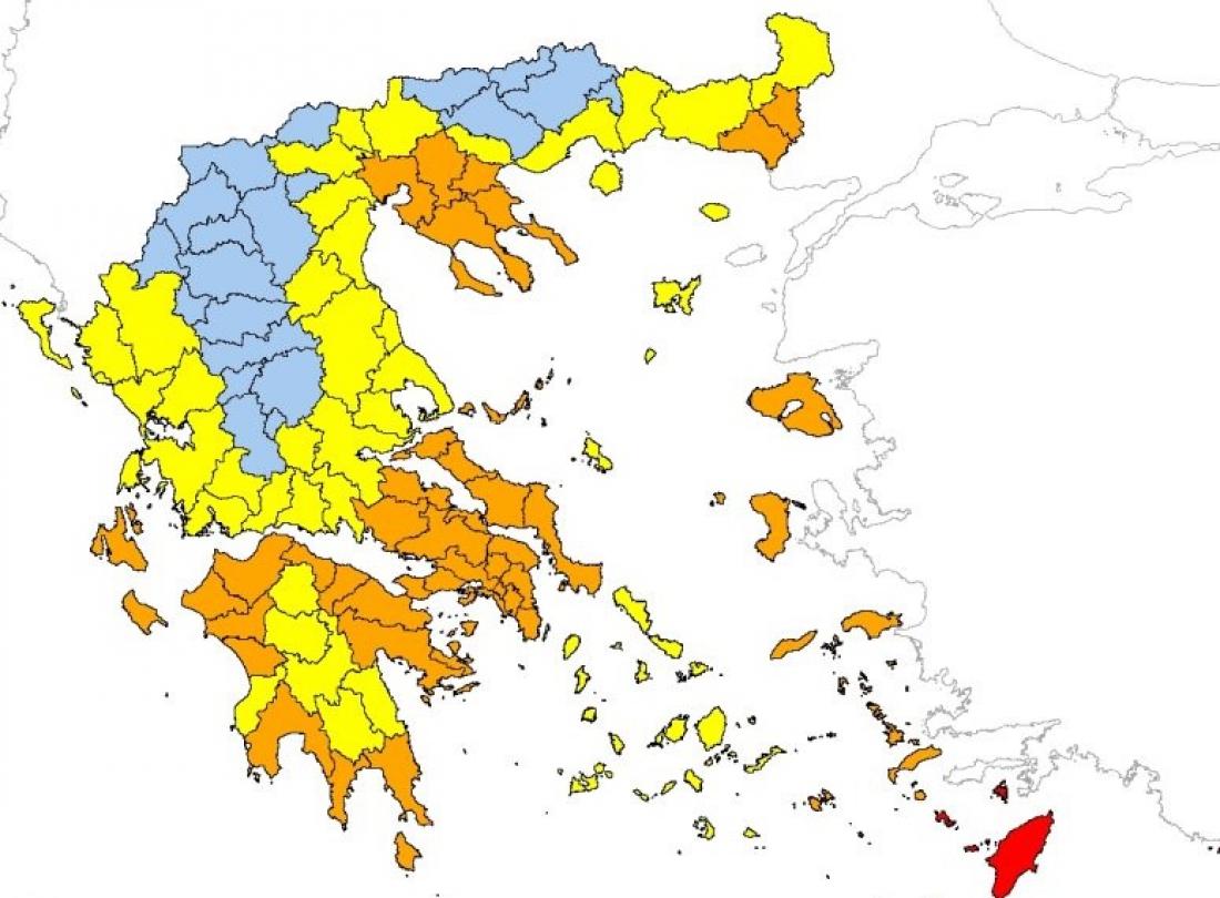 Πολύ υψηλός κίνδυνος πυρκαγιάς (κατηγορία κινδύνου 4) προβλέπεται αύριο για 5 Περιφέρειες της χώρας σύμφωνα με το Χάρτη Πρόβλεψης Κινδύνου Πυρκαγιάς που εκδίδει η γενική γραμματεία Πολιτικής Προστασίας του υπουργείου Προστασίας του Πολίτη (www.civilprotection.gr).