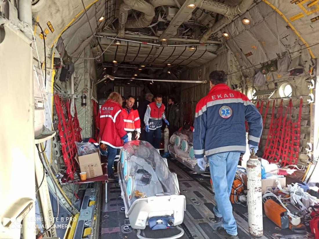 Η πολύ δύσκολη κατάσταση που επικρατεί στα νοσοκομεία της Μακεδονίας και η συνεχιζόμενη αύξηση των σοβαρών περιστατικών COVID-19 που χρειάζονται νοσηλεία σε ΜΕΘ οδήγησαν χθες και στην πρώτη αεροδιακομιδή περιστατικών από τη Βόρεια Ελλάδα σε νοσοκομεία της Αθήνας. Λόγω της μεγάλης επιβάρυνσης του νοσοκομείου Δράμας –και οι 12 κλίνες Εντατικής ήταν χθες κατειλημμένες–, οι γιατροί του νοσοκομείου κάλεσαν το ΕΚΑΒ τα ξημερώματα της Πέμπτης, ζητώντας τη διακομιδή ασθενών σε άλλη μονάδα. Από το ΕΚΑΒ τους ζητήθηκε να εντοπίσουν τρεις ασθενείς οι συγγενείς των οποίων δέχονται να γίνει διακομιδή σε νοσοκομείο της Αθήνας. Έτσι τρεις ηλικιωμένοι ασθενείς μεταφέρθηκαν στον «Ευαγγελισμό» και στο «Αττικόν» προκειμένου να εισαχθούν σε ΜΕΘ.