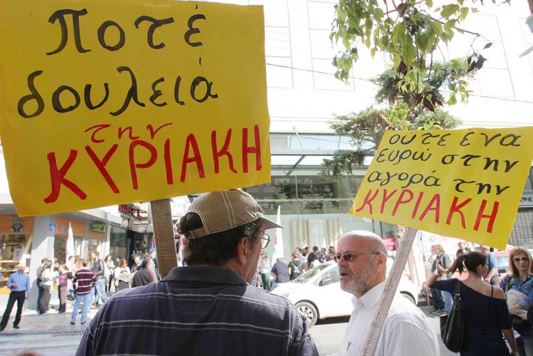 Η τονίζει πως εναντιώνεται στην απόφαση της κυβέρνησης και των δανειστών να λειτουργούν τα εμπορικά καταστήματα τουλάχιστον 30 Κυριακές το χρόνο σε τουριστικές περιοχές με ξενοδοχειακές μονάδες που στο σύνολό τους αριθμούν περισσότερο από 2.000 κλίνες.