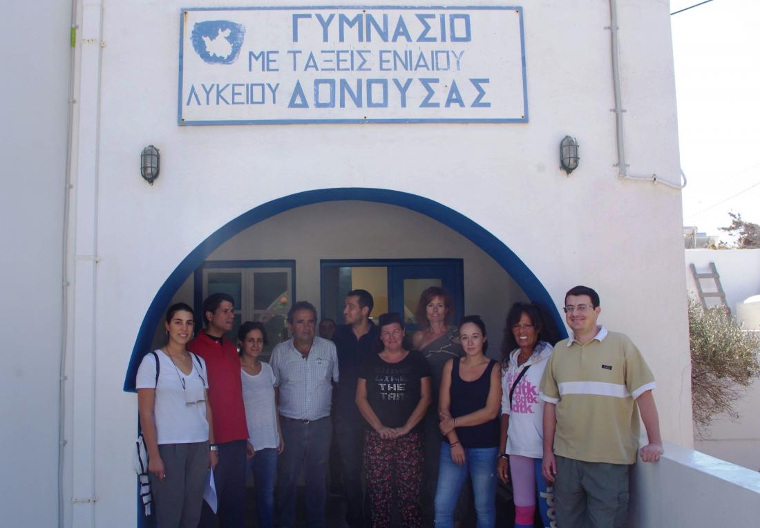 Φωτο: Μαθητές του Γυμνασίου Δονούσας στην οροφή του σχολικού κτιρίου όπου έχει τοποθετηθεί το σύγχρονο φωτοβολταϊκό σύστημα παραγωγής ηλεκτρικής ενέργειας