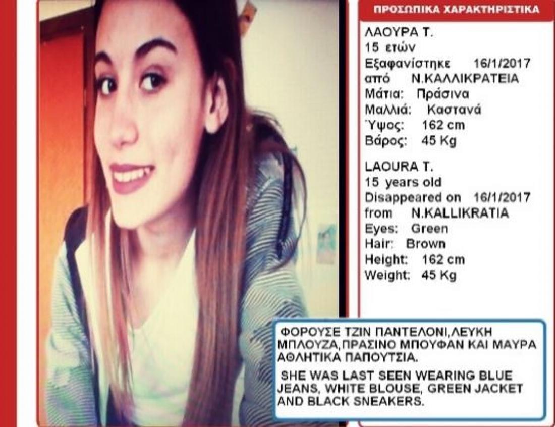 Το βράδυ της περασμένης Δευτέρας, δηλώθηκε η εξαφάνιση της 15χρονης που αγνοείται στην Καλλικράτεια Χαλκιδικής, σε αστυνομικό τμήμα από τους γονείς της. Από την ώρα εκείνη, διεξάγονται έρευνες για τον εντοπισμό της, αλλά μέχρι στιγμής είναι άκαρπες.