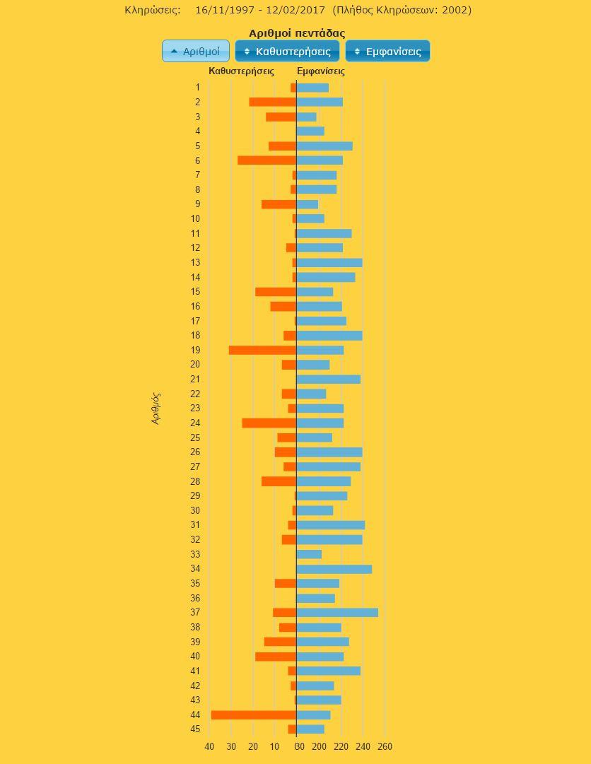 Για να αυξήσετε τις πιθανότητες επιτυχίας δείτε παρακάτω ποιοι αριθμοί βγαίνουν συχνά από την κληρωτίδα και ποιοι παρουσιάζουν καθυστερήσεις.