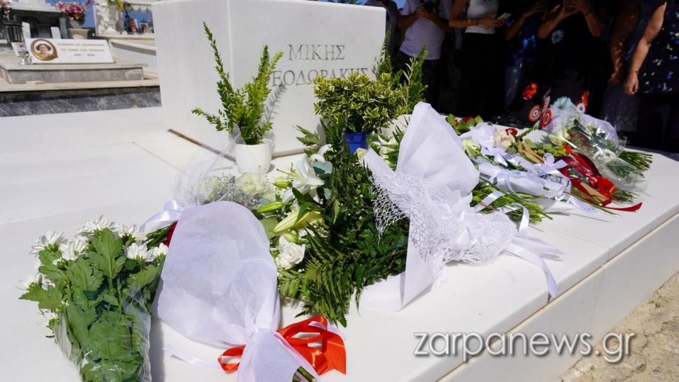 Δύο χρονιά μετά τον θάνατο του Μίκη Θεοδωράκη, τα Χανιά τίμησαν σήμερα την μνήμη του, με μνημόσυνο που τελέστηκε στο κοιμητήριο του Γαλατά, από τον μητροπολίτη Κυδωνίας -Αποκορώνου Δαμασκηνό.