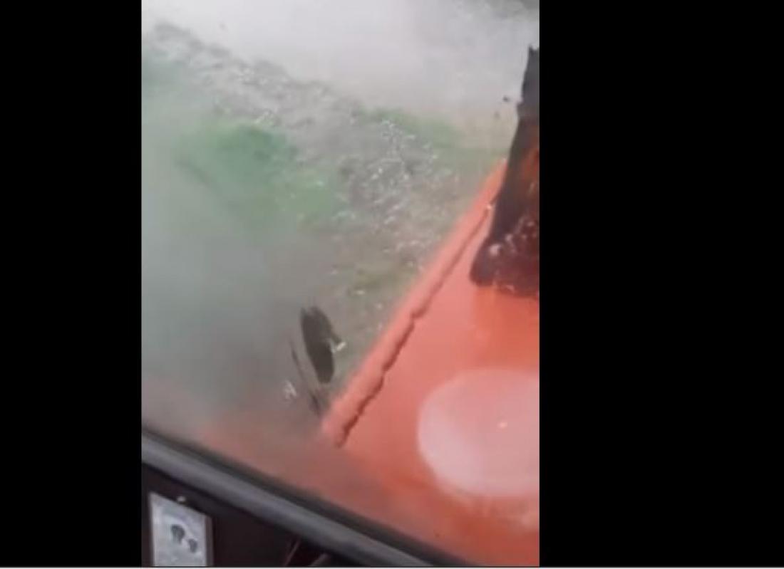 Αρχές Ιουνίου...Νέα έντονη χαλαζόπτωση έπληξε τα Φάρσαλα απογοητεύοντας τους αγρότες που έχουν πέσει θύματα της άγριας κακοκαιρίας. Όπως φαίνεται στο βίντεο η ένταση με την οποία έπεφτε το χαλάζι αλλά και το μέγεθός του ήταν τέτοιο, που χτυπούσε με μανία το τρακτέρ αγρότη στην περιοχή του Σταυρού, στον πρώην δήμο Ενιπέα .