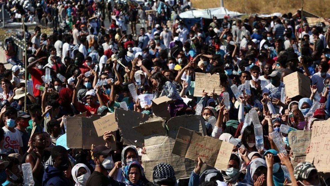 Χιλιάδες πρόσφυγες και μετανάστες διαδηλώνουν στη Μυτιλήνη