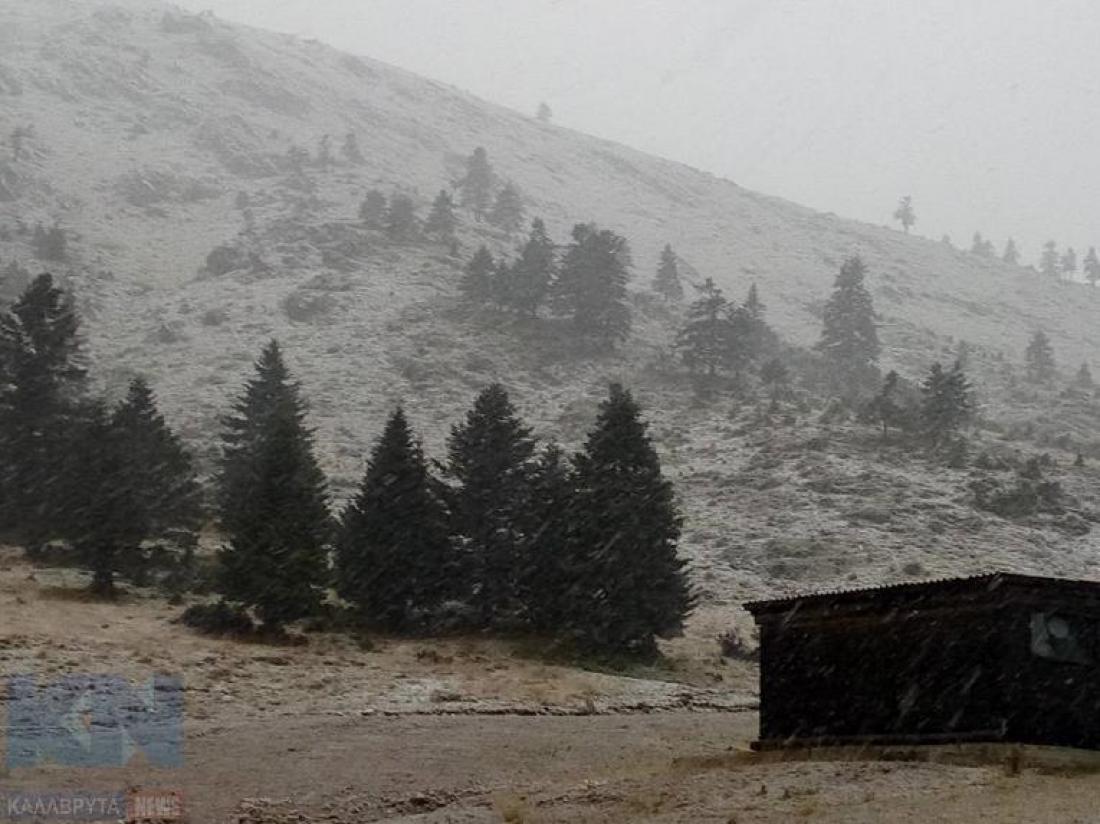 Χιονίζει στα Καλάβρυτα – Στα λευκά ο Χελμός (ΦΩΤΟ)