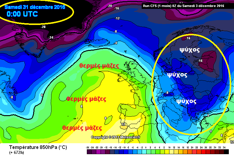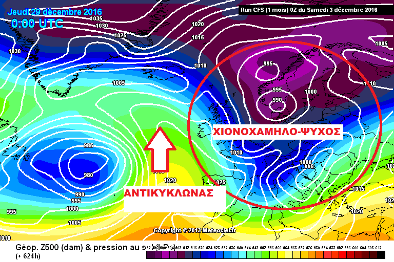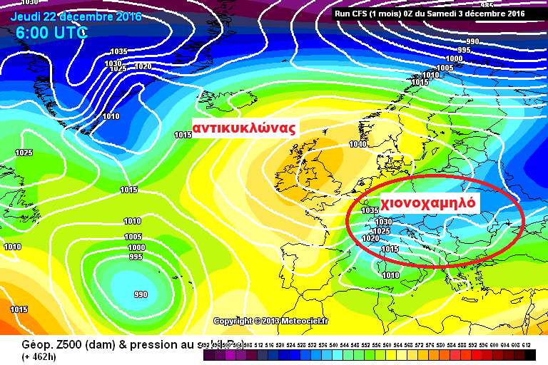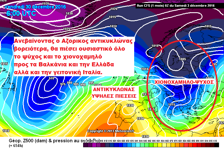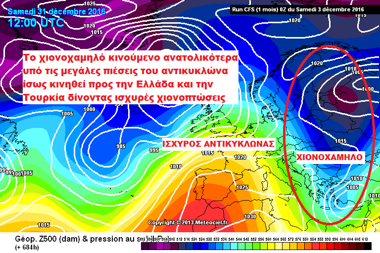 Τόσο η Αμερικάνικη ιστοσελίδα πρόβλεψης καιρού Accuweather.com, όσο και το Παγκόσμιο μοντέλο πρόβλεψης καιρού CFS αλλά και γενικότερα η τάση όλων των γνωστών μοντέλων πρόβλεψης καιρού όπως το GFS και το ECMWF, θέλουν το τελευταίο δεκαήμερο του Δεκέμβρη να έχουμε ιδιαίτερα ψυχρό καιρό, με καταβάσεις ψυχρών αέριων μαζών από την βόρεια Ευρώπη οι οποίες είναι πιθανό να συνδυαστούν με ισχυρές χιονοπτώσεις σε πολλές περιοχές της χώρας μας.