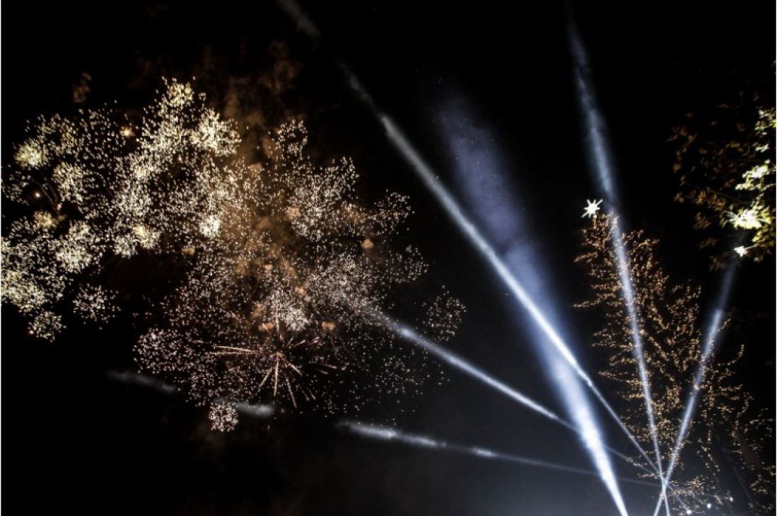 Η φωταγώγηση του χριστουγεννιάτικου δέντρου έγινε με μια εντυπωσιακή τελετή που περιελάμβανε μουσική και ένα εντυπωσιακό σόου με βεγγαλικά, τα οποία γέμισαν χρώματα τον νυχτερινό ουρανό.