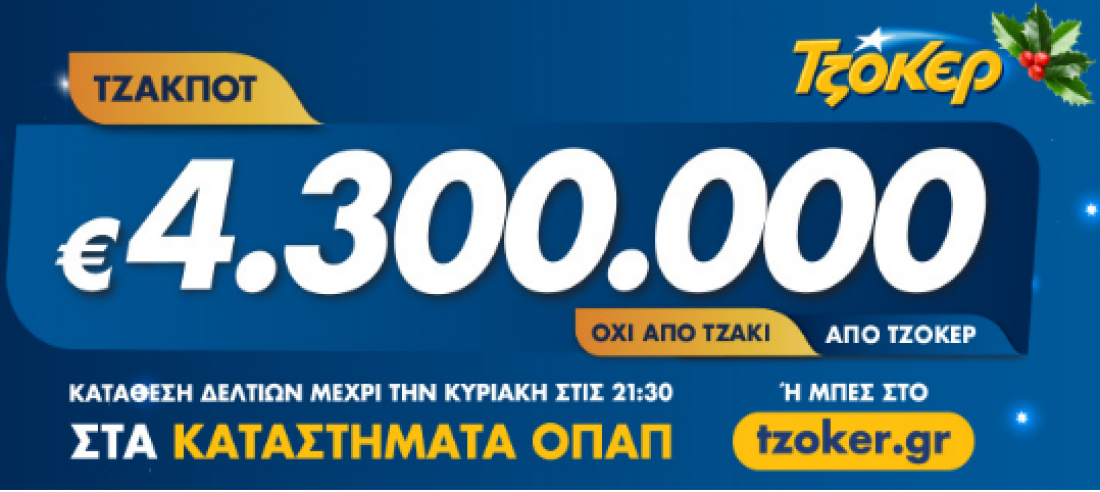Χριστουγεννιάτικος μποναμάς με 4,3 εκατομμύρια ευρώ στο ΤΖΟΚΕΡ