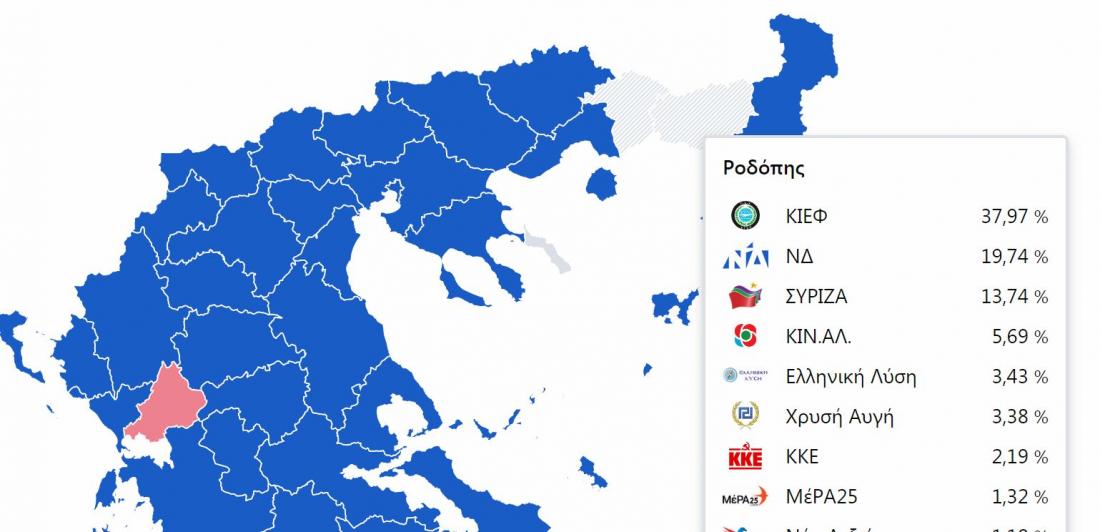 Το μειονοτικό Κόμματος Ισότητας Ειρήνης και Φιλίας (ΚΙΕΦ) εξαπλώθηκε για τα καλά καθώς με 99,16% της ενσωμάτωσης στις ευρωεκλογές, καταλαμβάνει στην Ξάνθη 25,05%, με τη ΝΔ να κατατάσσεται δεύτερη με 24,43%, ενώ στη Ροδόπη (99,65% της ενσωμάτωσης) παίρνει 37,97% με τη δεύτερη ΝΔ να παίρνει ποσοστό 19,74%!