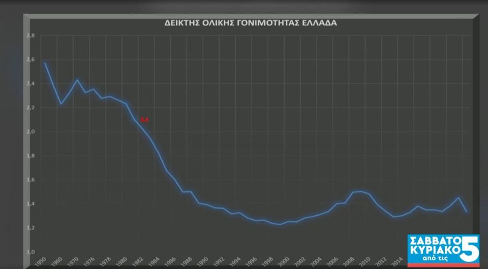 Αξίζει να σημειωθεί πως η παραπάνω κάρτα παρουσιάστηκε στην εκπομπή και η οποία δείχνει με διάγραμμα το δείκτη ολικής γονιμότητας στην Ελλάδα από το 1950 μέχρι το 2022.