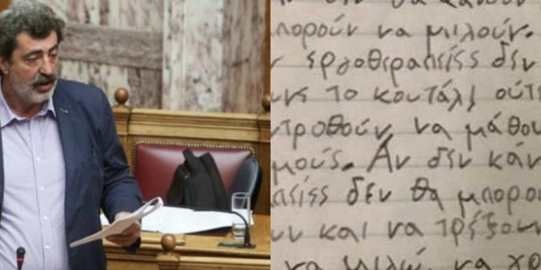 Συγκλονίζει το γράμμα μιας μικρής μαθήτριας με αποδέκτη τον αναπληρωτή υπουργό υγείας, Παύλο Πολάκη.