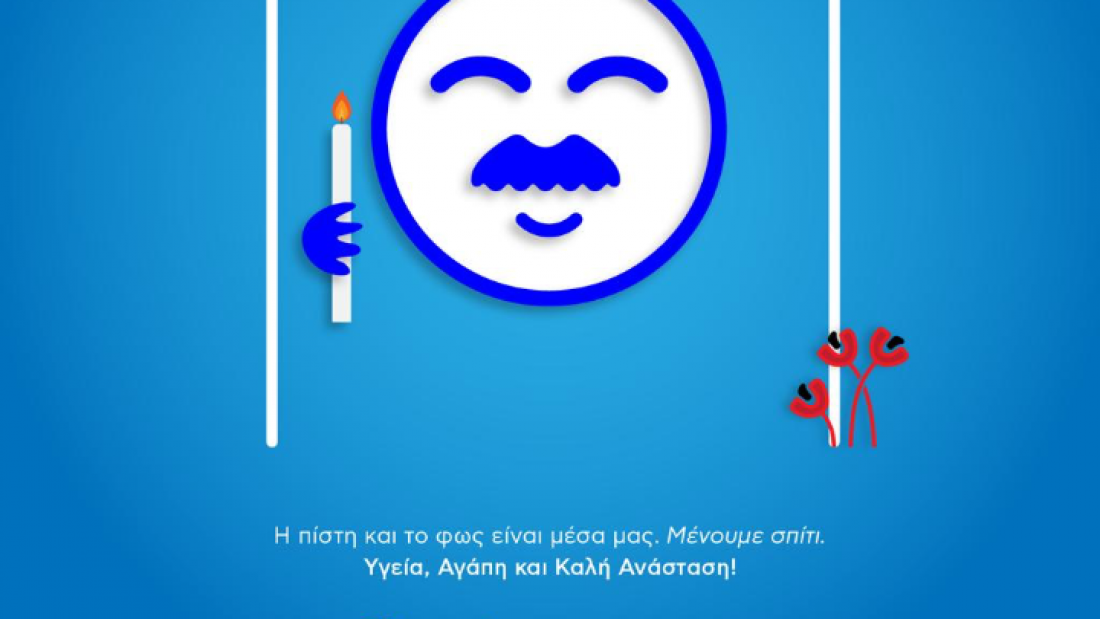 Με το σύνθημα «Μένουμε σπίτι» η εμβληματική φατσούλα, που κοσμεί τα τελευταία χρόνια τις κάρτες του Βαγγέλη Μεϊμαράκη, εύχεται Καλό Πάσχα. Στο εικαστικό της μέρος η κάρτα του επικεφαλής της ευρωομάδας της ΝΔ και αντιπροέδρου του ΕΛΚ περιγράφει ένα σπίτι στο οποίο είναι μέσα η γνωστή πλέον φατσούλα του Βαγγέλη Μεϊμαράκη κρατώντας στο χέρι μια πασχαλινή λαμπάδα.