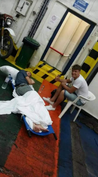 «Το πλήρωμα του καραβιού επίσης δεν επέτρεψε στον ασθενή να ανέβει στο κατάστρωμα του καραβιού. Ο ασθενής παρέμεινε στο γκαράζ του καραβιού πάνω σε φορείο με το φίλο του χωρίς συνοδό ιατρό», καταγγέλλει η Ομοσπονδία, παραθέτοντας και φωτογραφικά ντοκουμέντα για το θλιβερό περιστατικό.