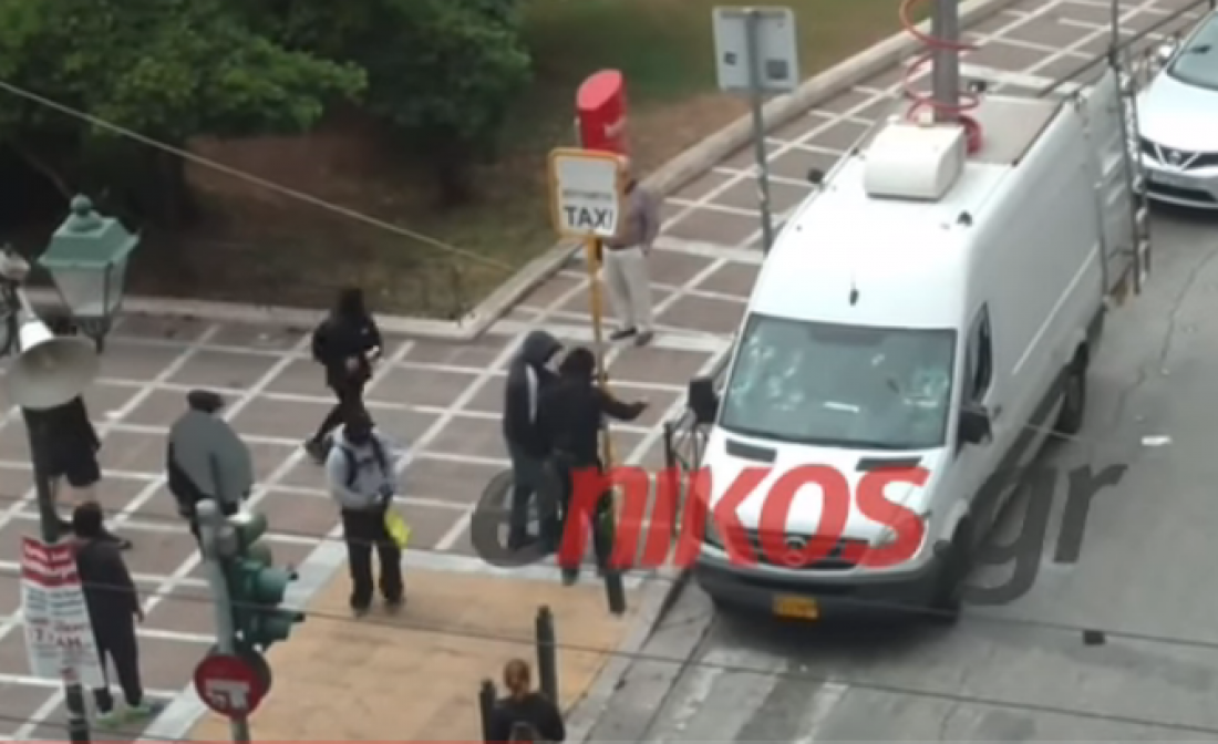 Καρέ-καρέ καταγράφηκε η επίθεση των αντιεξουσιαστών το μεσημέρι στην πλατεία Κλαυθμώνος στο βαν του ΑΝΤ1.