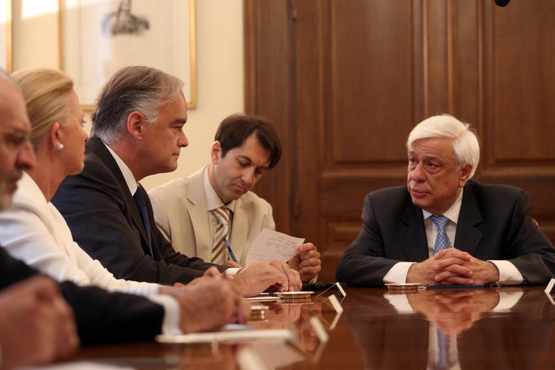 ΠΡΟΕΔΡΟΣ: Κύριε Πρόεδρε, κυρίες και κύριοι, με ιδιαίτερη χαρά σας υποδέχομαι στην Προεδρία της Δημοκρατίας σε μια πολύ κρίσιμη καμπή για το Προσφυγικό ζήτημα. Και θέλω εκ προοιμίου να συγχαρώ την Ομάδα Νομικών και Εσωτερικών υποθέσεων του Ευρωπαϊκού Λαϊκού Κόμματος, γιατί αντιμετωπίζει το ζήτημα αυτό με ιδιαίτερη ευαισθησία και με βάση τις αρχές του Ανθρωπισμού και της Αλληλεγγύης, όπως ταιριάζει στον Ευρωπαϊκό μας Πολιτισμό.