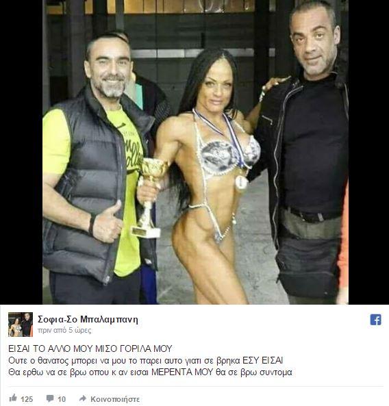 Η ίδια είναι και εκείνη αθλήτρια του body building και έγραψε στην προσωπική της ιστοσελίδα στο Facebook: "Είσαι το άλλο μου μισό γορίλα μου. Ούτε ο θάνατος μπορεί να μου το πάρει αυτό γιατί σε βρήκα ΕΣΥ ΕΙΣΑΙ. Θα έρθω να σε βρω όπου κ αν είσαι ΜΕΡΕΝΤΑ ΜΟΥ θα σε βρω σύντομα", έγραψε χαρακτηριστικά η σύντροφός του.