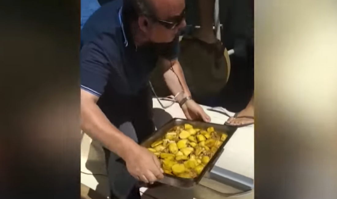 Οι κάτοικοι συγκέντρωσαν και οι εστιάτορες έφτιαξαν φαγητά στο πλήρωμα, θέλοντας να το ευχαριστήσουν με το δικό τους τρόπο, για τη διαρκή επαγρύπνηση, μετά και τα πρόσφατα περιστατικά με την τουρκική προκλητικότητα.