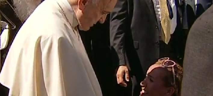 Εντύπωση προκάλεσε η επιμονή μίας γυναίκας η οποία "έσπασε" τον αστυνομικοό κλοιό και κατόρθωσε να φτάσει τον πάπα.