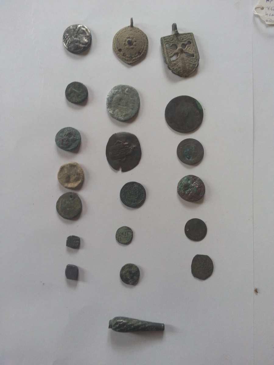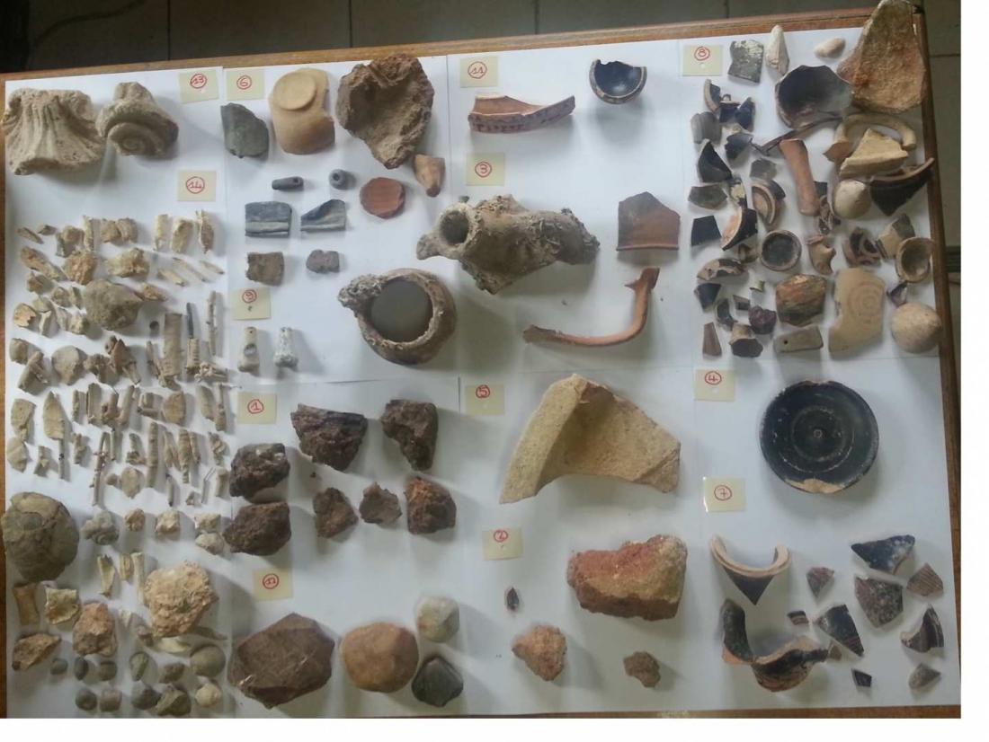 Από την μέχρι στιγμής έρευνα που διενεργείται στις παραπάνω αποθήκες παρουσία κλιμακίου της Εφορείας Αρχαιοτήτων Χαλκιδικής έχουν συλλεχθεί τμήμα από μαρμάρινο άγαλμα με χαραγμένη ανθρώπινη μορφή μήκους 46 εκατοστών, 42 χάλκινα νομίσματα, 133 νομίσματα, ένα αργυρό νόμισμα, τμήματα λίθινων τριβείων, αιχμή χάλκινου βέλους, τμήματα αμφορέων, τμήμα πήλινου ειδωλίου, λίθινα εργαλεία από χαλαζία, πυριτόλιθο και άλλους λίθους.