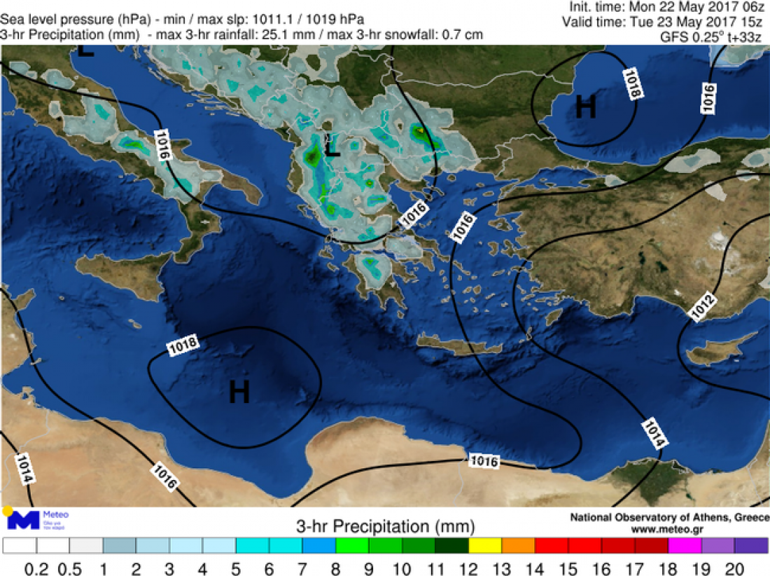 Καιρός: Η σημαντική αστάθεια των θερμών ωρών, σε συνδυασμό με τα μεγάλα ποσά υγρασίας στην κατώτερη τροπόσφαιρα, αναμένεται να προκαλέσουν την εκδήλωση, ισχυρών και πιθανώς επικινδύνων φαινομένων το μεσημέρι και απόγευμα της Τρίτης 23 Μαΐου 2017.