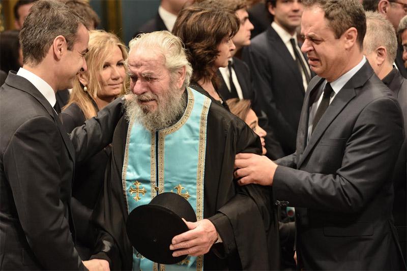Στη νεκρώσιμη ακολουθία χοροστάτησε ο Αρχιεπίσκοπος Αθηνών και Πάσης Ελλάδας κ.Ιερώνυμος. Το παρών έδωσαν μεταξύ άλλων ο Πρόεδρος της Δημοκρατίας Προκόπης Παυλόπουλος, ο πρωθυπουργός Αλέξης Τσίπρας, ο Πρόεδρος της Κυπριακής Δημοκρατίας Νίκος Αναστασιάδης, οι πρώην πρωθυπουργοί Κώστας Σημίτης, Αντώνης Σαμαράς και Γιώργος Παπανδρέου, σύσσωμη η κοινοβουλευτική ομάδα της ΝΔ, ο υπουργός Άμυνας Πάνος Καμμένος, η ηγεσία των ενόπλων δυνάμεων και της Δικαιοσύνης, όπως και ο , τέως βασιλιάς της Ελλάδος και στενός φίλος του Κωνσταντίνου Μητσοτάκη.