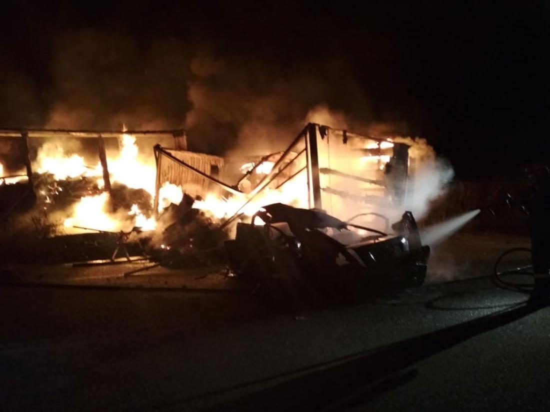 Ο οδηγός του φορτηγού αυτοκινήτου, ελληνικών στοιχείων ταυτότητας, την τελευταία στιγμή μπόρεσε να εγκαταλείψει το όχημα.