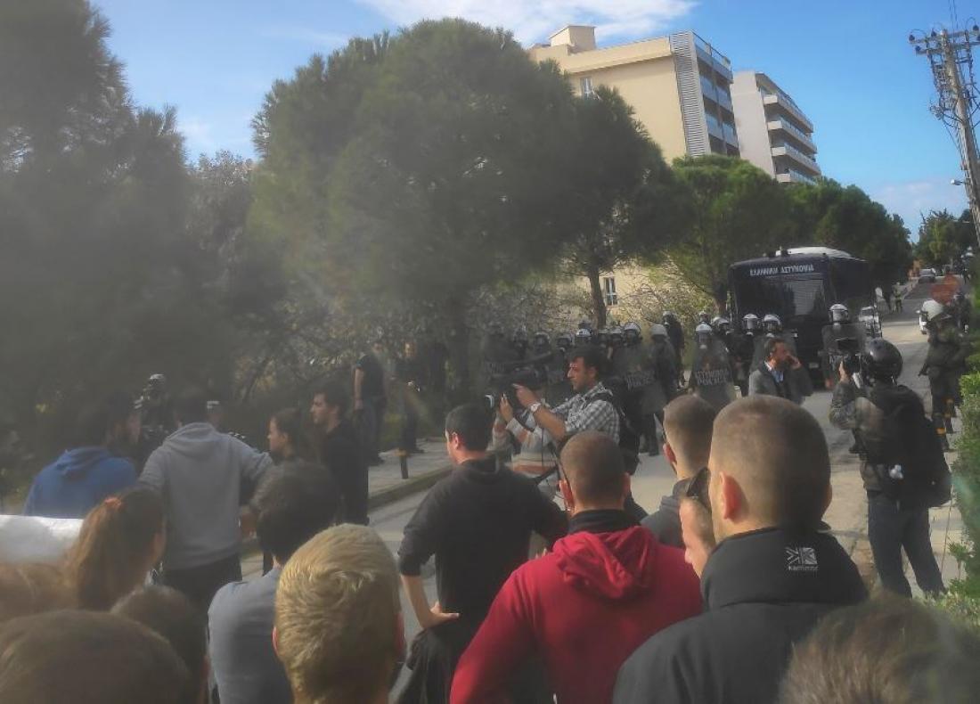 Οι νεαροί διαδηλωτές προσπάθησαν να πλησιάσουν το ξενοδοχείο όπου πραγματοποιούνταν η σύνοδος των Πρυτάνεων , με αποτέλεσμα να υπάρξει επέμβαση των ΜΑΤ.