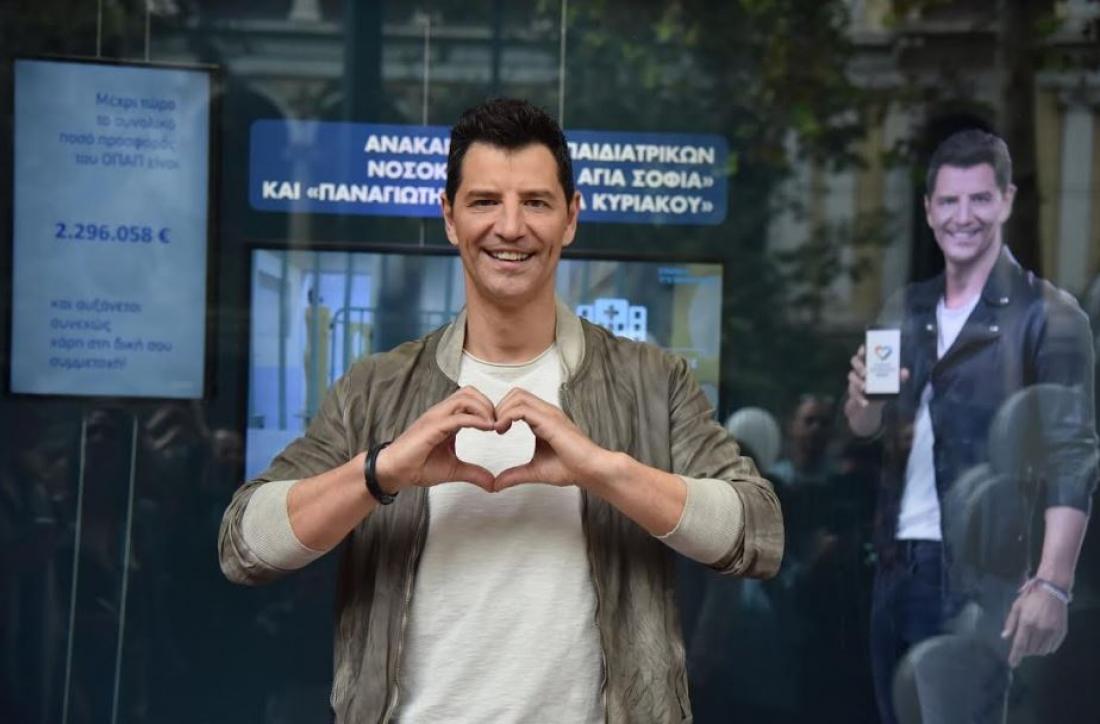 O Σάκης Ρουβάς φωτογραφίζεται με μέλη της ομάδας προσφοράς ΟΠΑΠ