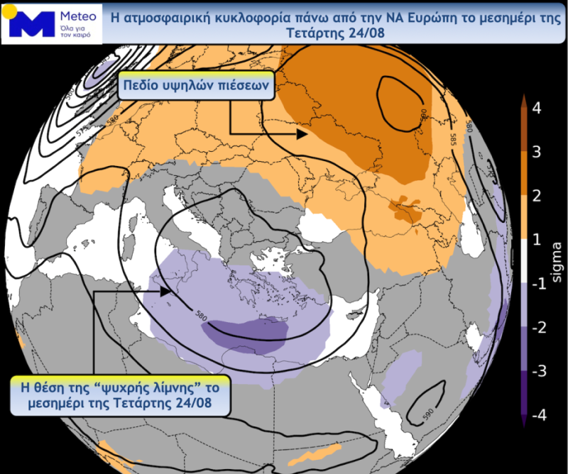 Έτσι, ως αποκομμένο χαμηλό ή “ψυχρή λίμνη” αναμένεται να διατηρηθεί σχεδόν στάσιμη πάνω από την χώρα μας για τις επόμενες 3 ημέρες (Γραφικό 1) με αποτέλεσμα να διατηρηθούν οι βροχές και καταιγίδες στην χώρα μας. Αξιοσημείωτο είναι τοπικά αναμένονται έντονα και επίμονα φαινόμενα, δυνητικά επικίνδυνα για πλημμυρικά επεισόδια. Ωστόσο, αξίζει να σημειωθεί ότι λόγω της φύσης μιας “ψυχρής λίμνης” σε συνδυασμό με τις πολύ υγρές και ασταθείς αέριες μάζες πάνω από την χώρα μας είναι προγνωστικά εξαιρετικά αβέβαιο ο χρόνος, η ακριβής ένταση και η τοποθεσία των φαινομένων.