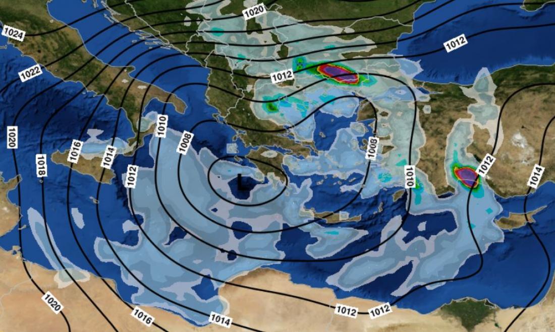 Το ισχυρό βαρομετρικό χαμηλό είναι καθ'οδόν προς την περιοχή μας και από αύριο (Δευτέρα) το πρωί θα αρχίσει να επηρεάζει πρώτα την βορειοδυτική Ελλάδα με ισχυρές , αλλά και τοπικές χαλαζοπτώσεις.